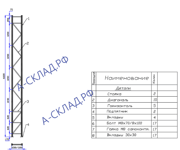 Рама П 90 6600×1000×1,5 мм для стеллажа серии П 90 старый зацеп. Основные параметры и размеры стеллажа соответствуют ТУ 525 472−001−3 459 454−17, ГОСТ Р 55 525−2017.