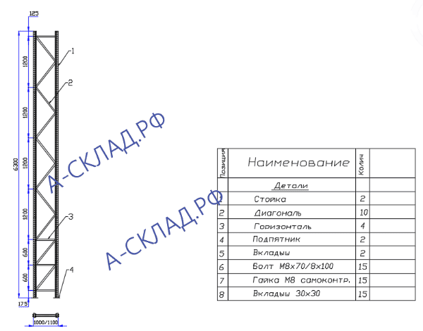 Рама П 90 6300×1000×1,5 мм для стеллажа серии П 90 старый зацеп. Основные параметры и размеры стеллажа соответствуют ТУ 525 472−001−3 459 454−17, ГОСТ Р 55 525−2017.