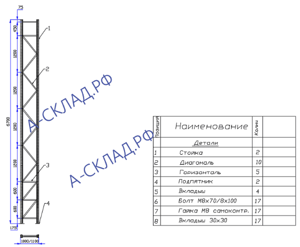 Рама П 90 6700×1000×1,5 мм для стеллажа серии П 90 старый зацеп. Основные параметры и размеры стеллажа соответствуют ТУ 525 472−001−3 459 454−17, ГОСТ Р 55 525−2017.
