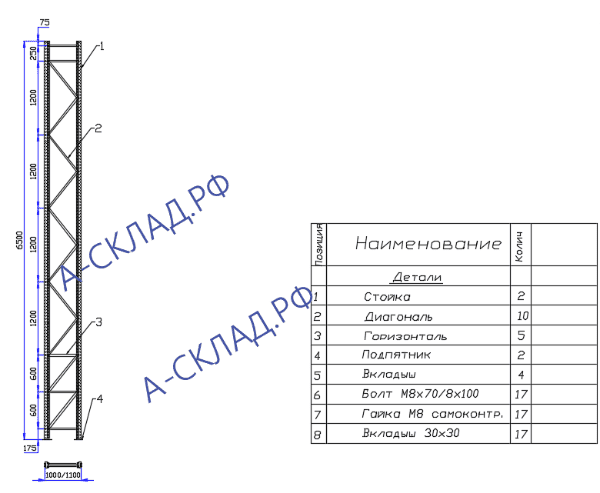 Рама П 90 6500×1000×1,5 мм для стеллажа серии П 90 старый зацеп. Основные параметры и размеры стеллажа соответствуют ТУ 525 472−001−3 459 454−17, ГОСТ Р 55 525−2017.