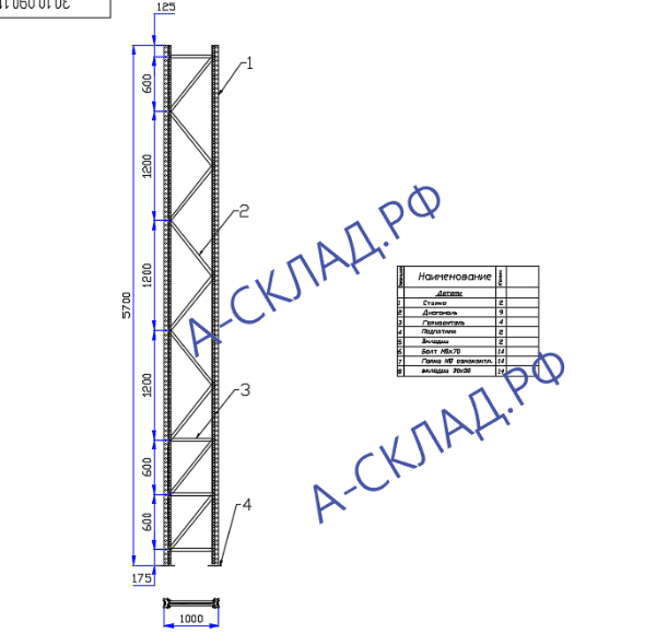 Рама П 90 5700×1000×1,5 мм для стеллажа серии П 90 старый зацеп. Основные параметры и размеры стеллажа соответствуют ТУ 525 472−001−3 459 454−17, ГОСТ Р 55 525−2017.