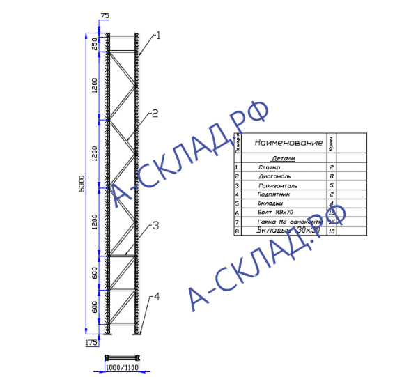 Рама П 90 5300×1000×1,5 мм для стеллажа серии П 90 старый зацеп. Основные параметры и размеры стеллажа соответствуют ТУ 525 472−001−3 459 454−17, ГОСТ Р 55 525−2017.