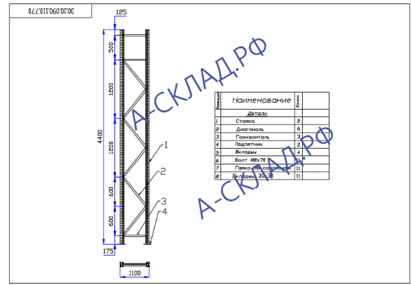 Рама П 90 4400×1000×1,5 мм для стеллажа серии П 90 старый зацеп. Основные параметры и размеры стеллажа соответствуют ТУ 525 472−001−3 459 454−17, ГОСТ Р 55 525−2017.