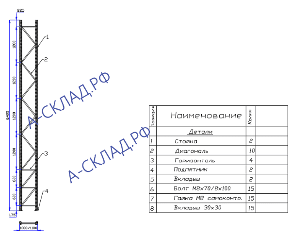 Рама П 90 6400×1000×1,5 мм для стеллажа серии П 90 старый зацеп. Основные параметры и размеры стеллажа соответствуют ТУ 525 472−001−3 459 454−17, ГОСТ Р 55 525−2017.