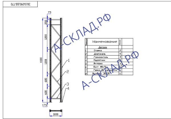 Рама П 90 4100×1000×1,5 мм для стеллажа серии П 90 старый зацеп. Основные параметры и размеры стеллажа соответствуют ТУ 525 472−001−3 459 454−17, ГОСТ Р 55 525−2017.