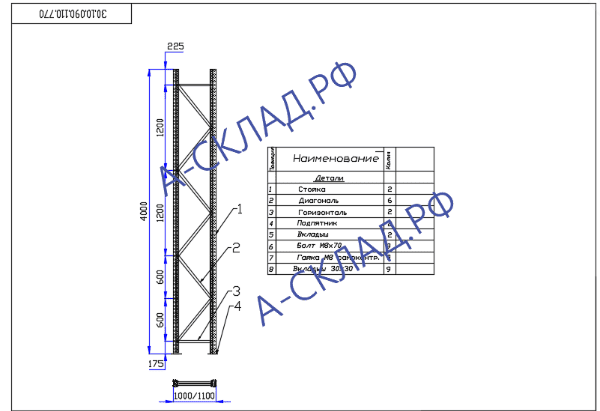 Рама П 90 4000×1000×1,5 мм для стеллажа серии П 90 старый зацеп. Основные параметры и размеры стеллажа соответствуют ТУ 525 472−001−3 459 454−17, ГОСТ Р 55 525−2017.