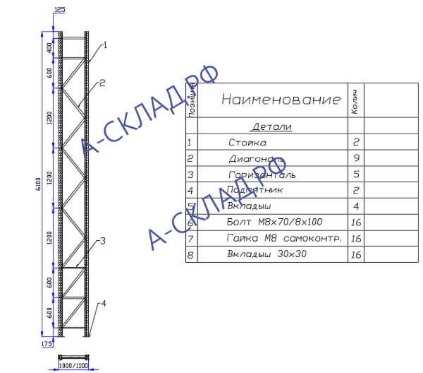 Рама П 90 6100×1000×1,5 мм для стеллажа серии П 90 старый зацеп. Основные параметры и размеры стеллажа соответствуют ТУ 525 472−001−3 459 454−17, ГОСТ Р 55 525−2017.
