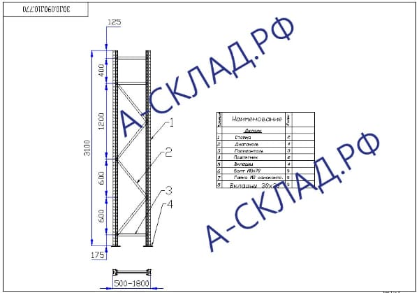 Рама П 90 3100×1000×1,5 мм для стеллажа серии П 90 старый зацеп. Основные параметры и размеры стеллажа соответствуют ТУ 525 472−001−3 459 454−17, ГОСТ Р 55 525−2017.