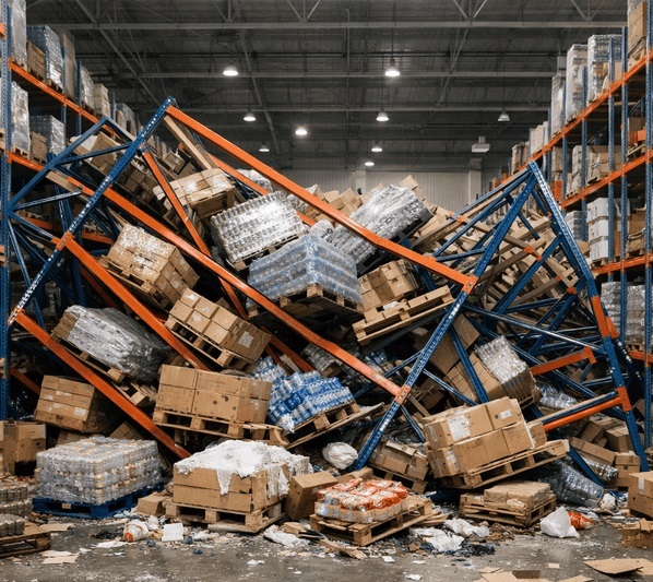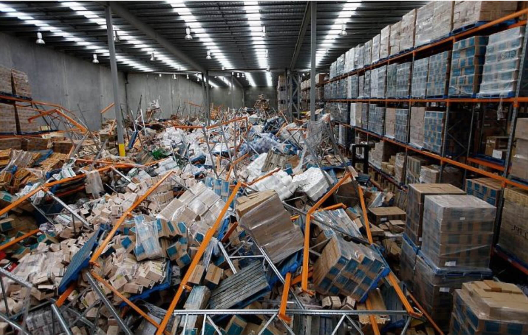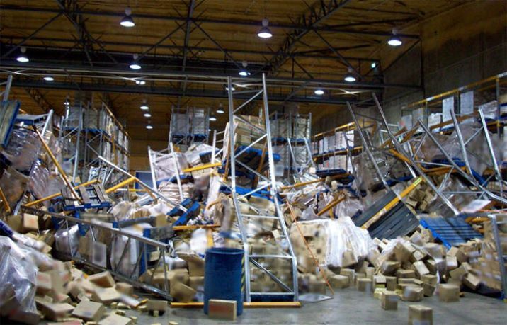 Фото обрушения стеллажей на складе